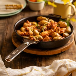Die Kohlenstoffstahl-Pfanne mit abnehmbarem Griff von Kockums Jernverk wurde entwickelt, um maximale Flexibilität in der Küche zu bieten. Verwenden Sie sie mit montiertem Griff als Pfanne auf dem Herd und stellen Sie sie anschließend problemlos in den Ofen. Ohne Griff eignet sie sich ebenso gut als Pie- oder Auflaufform und kann auch direkt zum Servieren auf den Tisch gestellt werden.